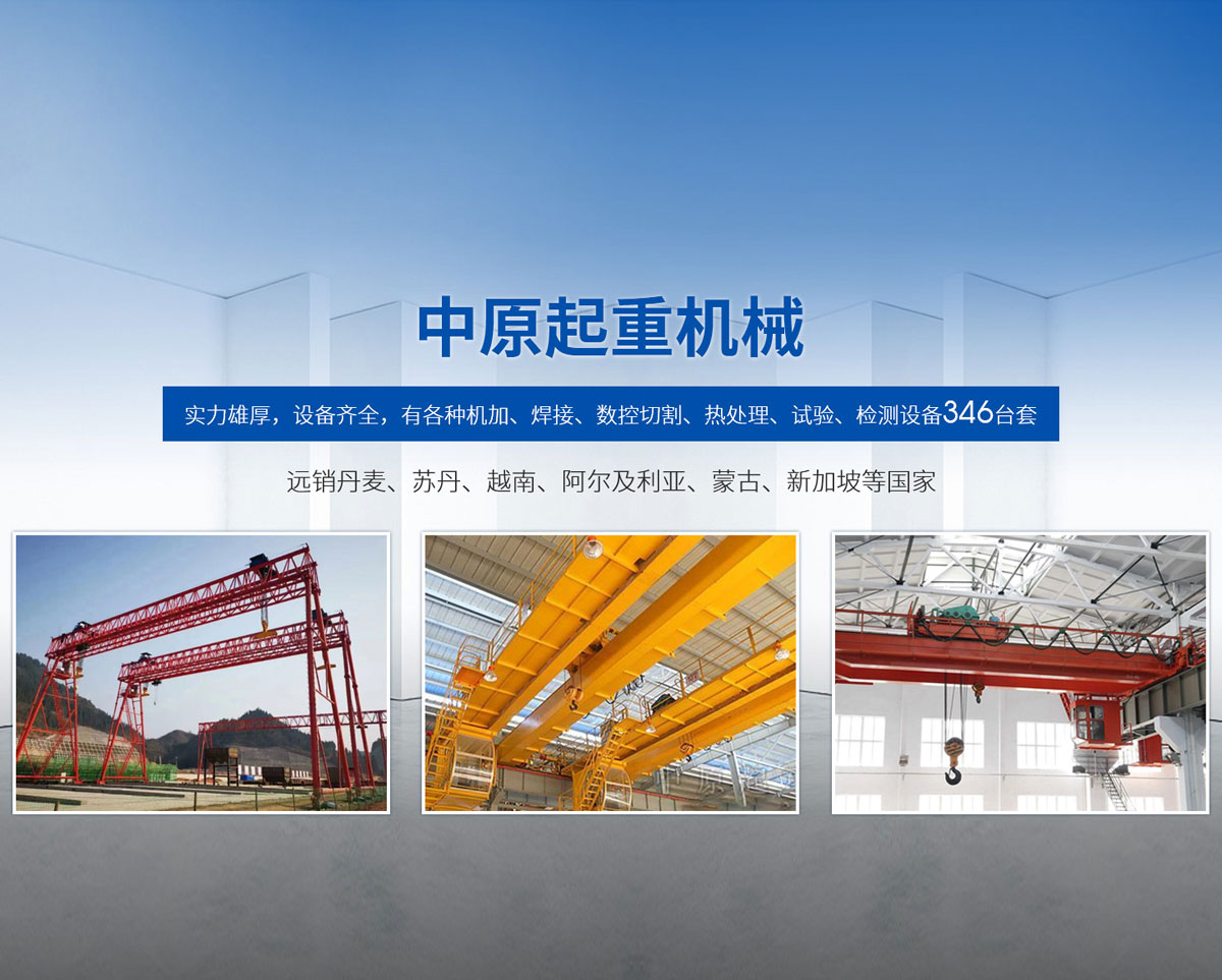 新鄉(xiāng)市中原起重機(jī)械有限公司成立于2000年,地處中原,輻射全國28個省市自治區(qū),設(shè)外埠經(jīng)銷處、辦事處268個。產(chǎn)品行銷工礦、建材、化工、冶金、電力、交通、鐵路、油田、港口等各個行業(yè)。遠(yuǎn)銷丹麥、蘇丹、越南、阿爾及利亞、蒙古、新加坡等國家。  公司實(shí)力雄厚,設(shè)備齊全,有各種機(jī)加、焊接、數(shù)控切割、熱處理、試驗(yàn)、檢測設(shè)備7臺;有機(jī)加工、熱處理、單、雙梁橋門機(jī)生產(chǎn)、檢測、安裝等9個車間,研究中心、運(yùn)輸公司、安裝維修服務(wù)公司等機(jī)構(gòu),?  主要產(chǎn)品有:LD型1~20噸電動單梁起重機(jī)系列產(chǎn)品;5~600噸通用橋式、門式、冶金、上旋轉(zhuǎn)下旋轉(zhuǎn)電磁吊、絕緣、抓斗、防爆起重機(jī)系列產(chǎn)品;LH3~100噸葫蘆雙梁系列產(chǎn)品;MH5~32噸葫蘆門式系列產(chǎn)品;0.5~40噸CD1、MD1鋼絲繩電葫蘆系列產(chǎn)品;HS1型0.5~20噸手動葫蘆系列產(chǎn)品;0.5~10噸環(huán)鏈電動葫蘆系列;0.5~40噸彎道電動葫蘆系列產(chǎn)品;裝卸橋、造船門機(jī)、架橋機(jī)、鑄造吊和水電大噸位起重機(jī)系列產(chǎn)品。  公司建立了強(qiáng)有力的質(zhì)量保證體系和生產(chǎn)過程的質(zhì)量控制系統(tǒng),嚴(yán)格執(zhí)行國家設(shè)計、生產(chǎn)標(biāo)準(zhǔn),有嚴(yán)格的生產(chǎn)工藝過程和標(biāo)準(zhǔn),嚴(yán)格的檢驗(yàn)、檢測標(biāo)準(zhǔn)和手段。